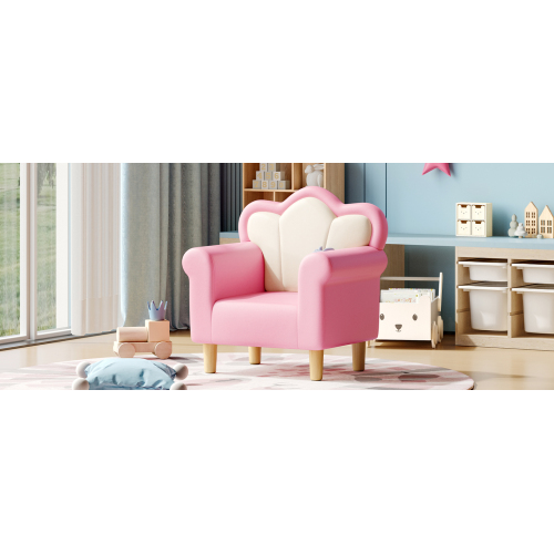 Product Name: Upholstered Kids Sofa, Princess Armchair for Children, Petal Shape Toddler Sofa Chair for Playroom, Children's Bedroom, Pink+White