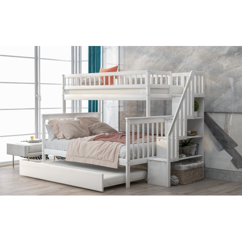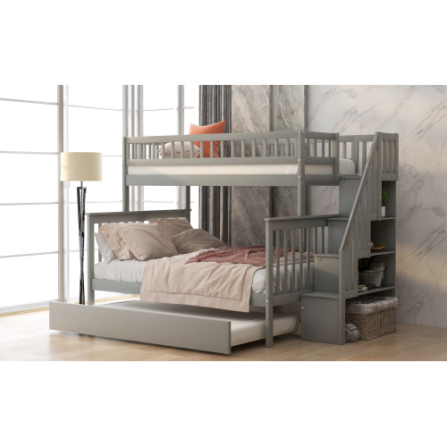 Product Name: Twin over Full Bunk Bed with Trundle and Staircase,Gray