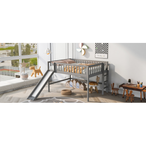 Product Name: Twin Size Low Loft Bed with Ladder and Slide,White(OLD SKU:WF196418AAK)
