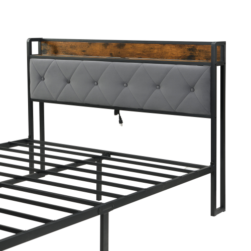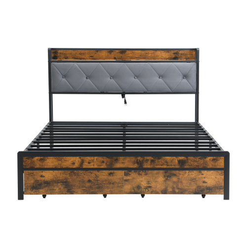 Product Name: Queen Bed Frame with Storage, Bed Frame with LED Lights Upholstered Headboard and 2 Drawers, USB & Charging Station, No Box Spring Needed, Easy Assembly, Grey