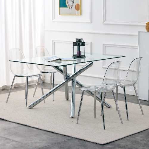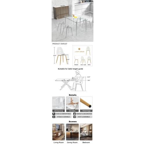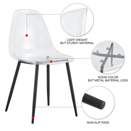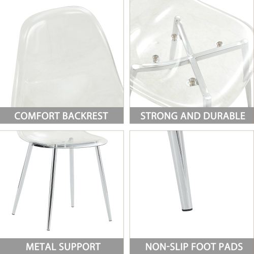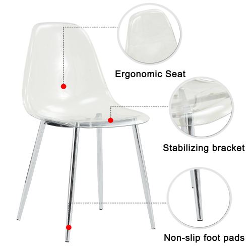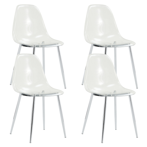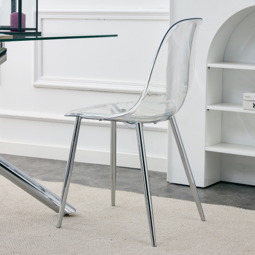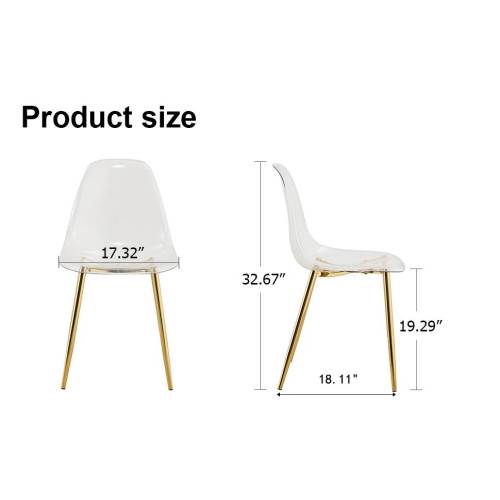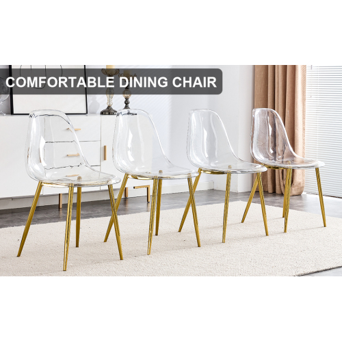 Product Name: Modern simple transparent dining chair plastic chair armless crystal chair Nordic creative makeup stool negotiation chair Set of 4 and plating metal legW115164140,TW-1200
