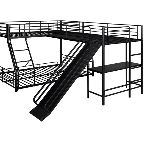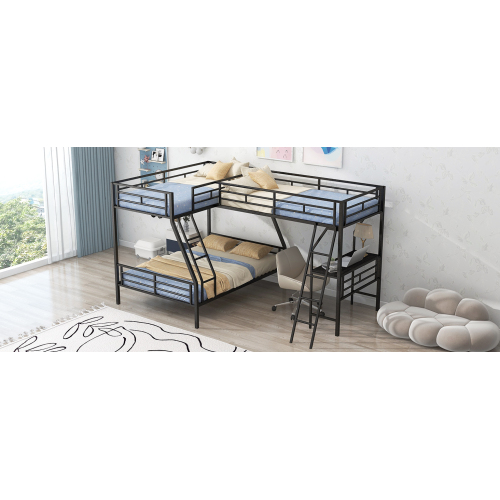 Product Name: Twin over Full Bunk Bed with a Twin Size Loft Bed attached, with a Desk, Metal, Black